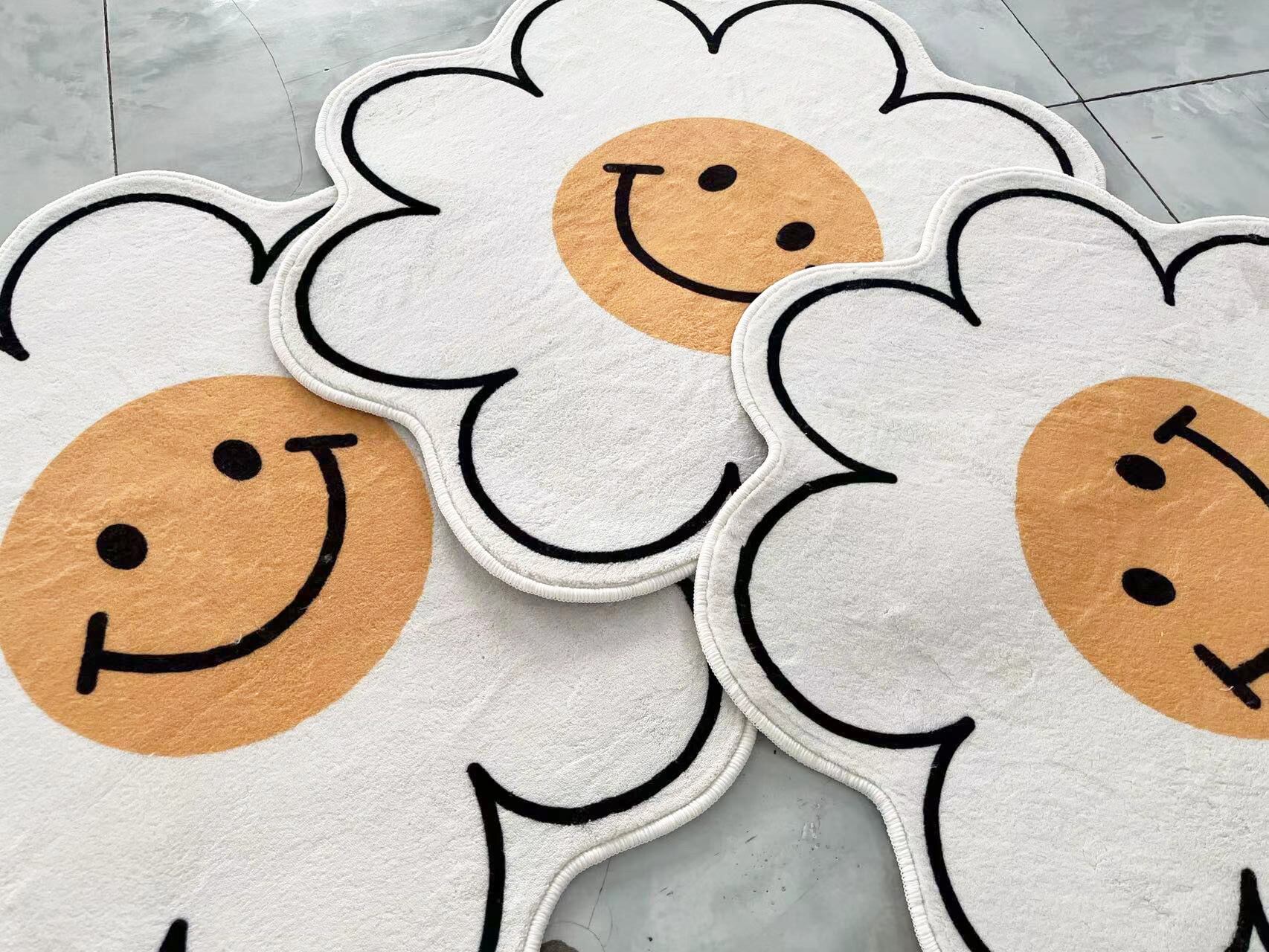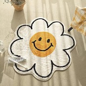 【40cm✕40cm/ホワイト&イエロー】ニコチャン 玄関 韓国 インテリア マット 絨毯 小物置き ラグ 雑貨